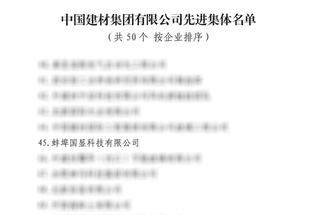 蚌埠囯顯榮獲“中國建材集團先進集體”榮譽稱號